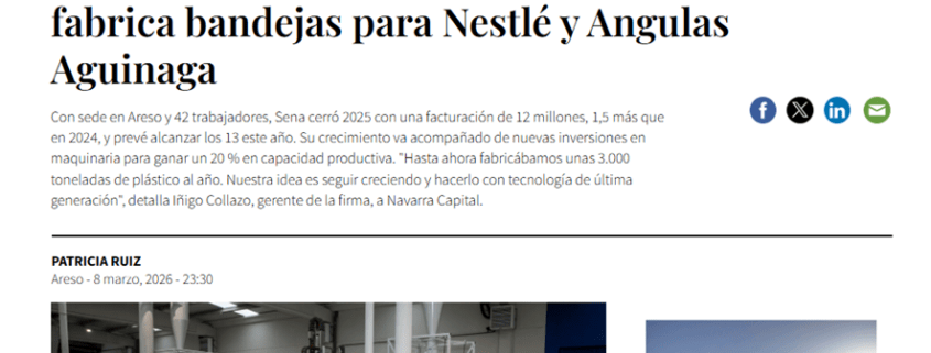 SENAsa aparece esta semana en el medio digital «Navarra Capital» con motivo de sus nuevas inversiones.